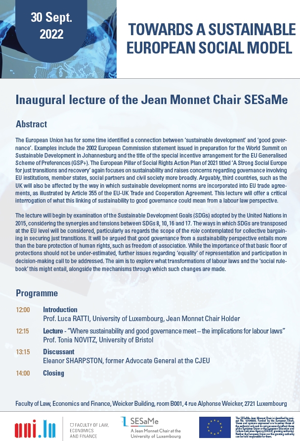Inaugural lecture of the Jean Monnet Chair SESaMe