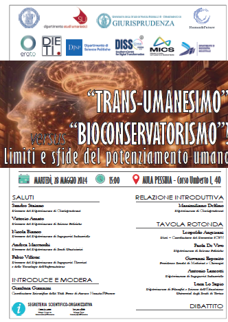 Da Mar, 28/05/2024 a Mar, 28/05/2024 Mode On-site-only File Programma759.52 KB 06/05/2024 'Trans-umanesimo' versus 'bioconservatorismo'? Limiti e sfide del potenziamento umano on-site only h. 10:00 | Corso Umberto I 40, Napoli Iniziativa interdipartimentale dell'Università di Napoli Federico II
