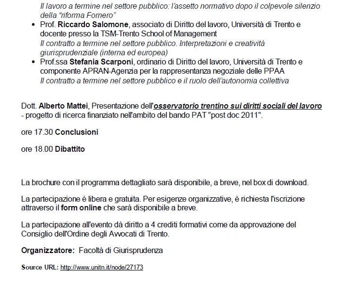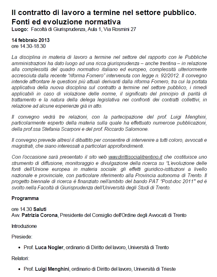 Da Gio, 14/02/2013 a Gio, 14/02/2013 Mode On-site-only 14/11/2022 TRENTO - Il contratto di lavoro a termine nel settore pubblico. Fonti ed evoluzione normativa on-site only | Facoltà di Giurisprudenza - 14.30