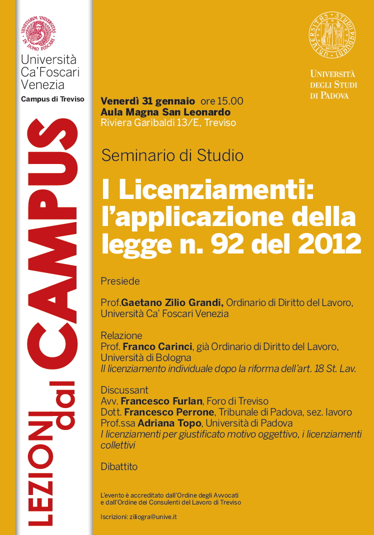 Da Ven, 31/01/2014 a Ven, 31/01/2014 Mode On-site-only 14/11/2022 TREVISO - I Licenziamenti: l’applicazione della legge n. 92 del 2012 on-site only | Riviera Garibaldi 13/E - 15.00