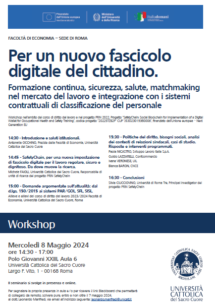 Per segnalare la propria presenza in aula e/o per ricevere il link Blackboard che permetterà di collegarsi da remoto, scrivere pure, entro e non oltre il 7 maggio 2024, al dott. Leonardo Manfredi, via email all’indirizzo seguente: leonardo.manfredi@unicatt.it