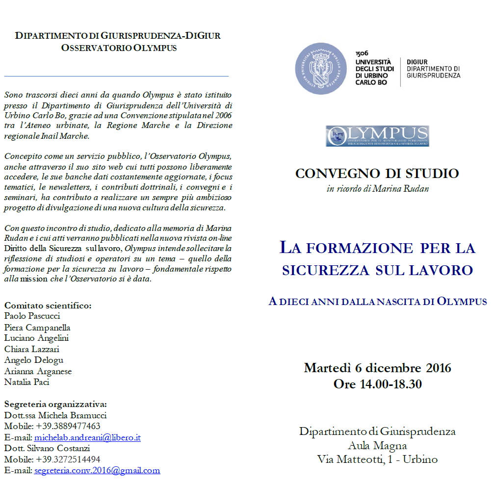 Da Mar, 06/12/2016 a Mar, 06/12/2016 Mode On-site-only 14/11/2022 URBINO - La formazione per la sicurezza sul lavoro on-site only | Via Matteotti, 1 - ore 14