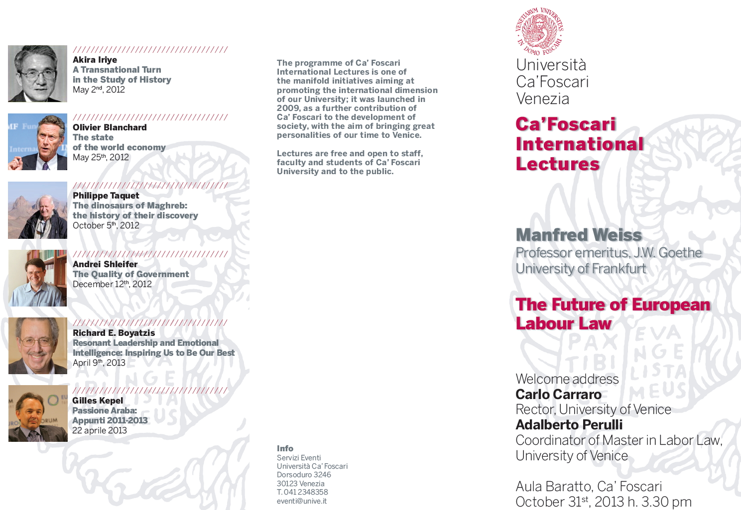 Da Gio, 31/10/2013 a Gio, 31/10/2013 Mode On-site-only 14/11/2022 VENEZIA - The Future of European Labour Law. International Lecture: M. Weiss J.W., Goethe University of Frankfurt on-site only | Aula Baratto, Ca’ Foscari