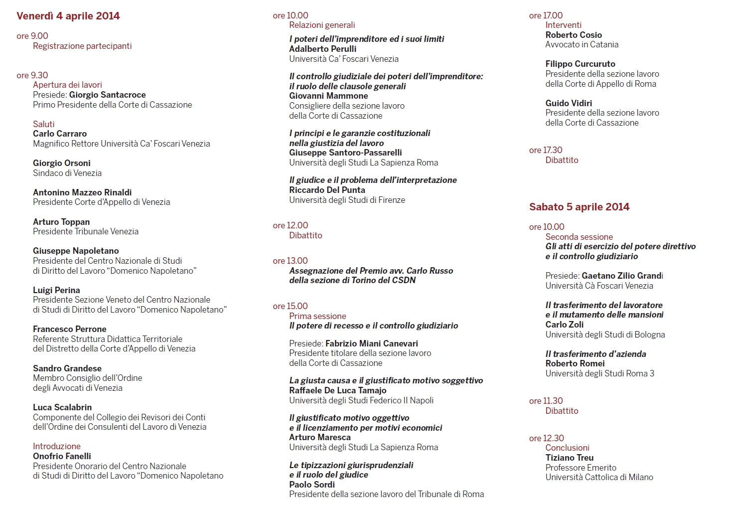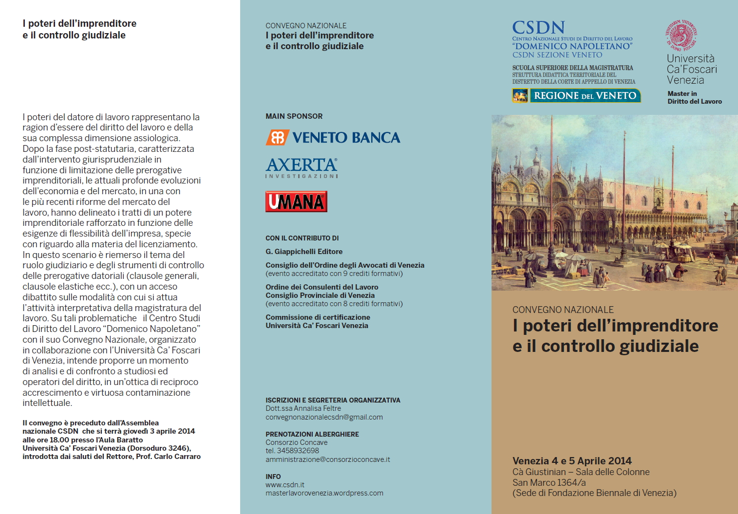 VENEZIA - I poteri dell’imprenditore e il controllo giudiziale. Convegno nazionale (4-5 aprile 2014)