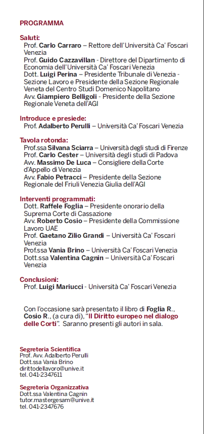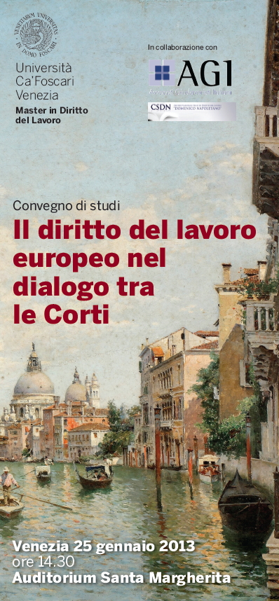 Da Ven, 25/01/2013 a Ven, 25/01/2013 Mode On-site-only 14/11/2022 VENEZIA - Il diritto del lavoro europeo nel dialogo tra le Corti on-site only | Auditorium Santa Margherita - 14.30