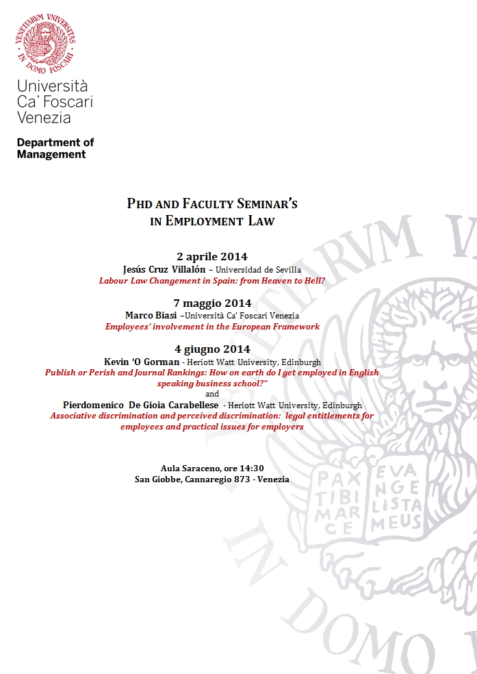 Da Mer, 02/04/2014 a Mer, 02/04/2014 Mode On-site-only 14/11/2022 VENEZIA - Labour Law Changement in Spain: from Heaven to Hell? Prof. J. Cruz Villalón (Universidad de Sevilla) on-site only | San Giobbe, Cannaregio 873 - 14.30
