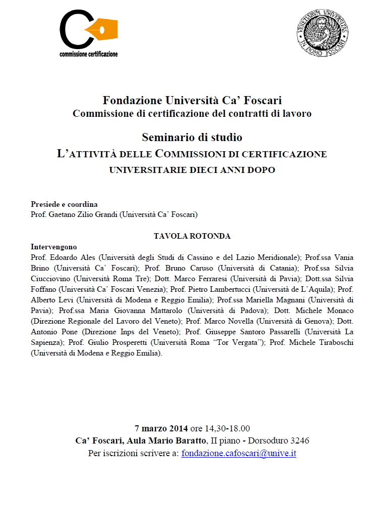 Da Ven, 07/03/2014 a Ven, 07/03/2014 Mode On-site-only 14/11/2022 VENEZIA - L’attività delle Commissioni di certificazione universitarie dieci anni dopo on-site only | Ca’ Foscari, Dorsoduro 3246 - 14.30