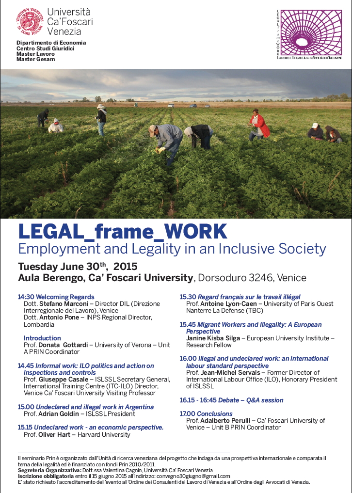 Da Mar, 30/06/2015 a Mar, 30/06/2015 Mode On-site-only 14/11/2022 VENEZIA - LEGAL_frame_WORK Employment and Legality in an Inclusive Society on-site only | Dipartimento di Economia - 14:30