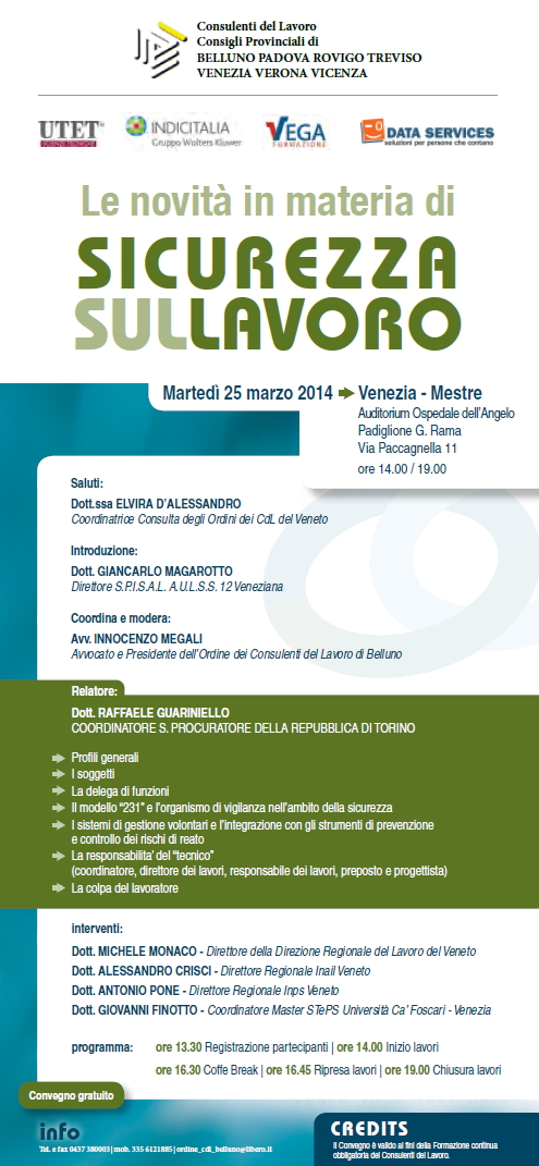 Da Mar, 25/03/2014 a Mar, 25/03/2014 Mode On-site-only 14/11/2022 VENEZIA-MESTRE - Le novità in materia di sicurezza sul lavoro on-site only | via Paccagnella 11 - 14.00