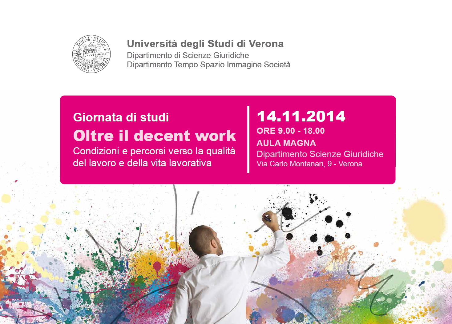 Da Ven, 14/11/2014 a Ven, 14/11/2014 Mode On-site-only 14/11/2022 VERONA - Oltre il decent work. Condizioni e percorsi verso la qualità del lavoro e della vita lavorativa on-site only | via Carlo Montanari, 9 - 9:00