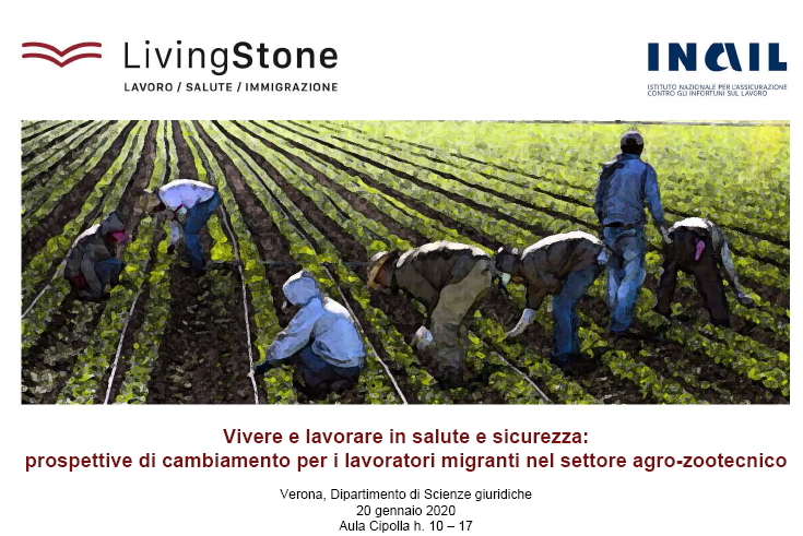 Da Lun, 20/01/2020 a Lun, 20/01/2020 Mode On-site-only 14/11/2022 VERONA - Vivere e lavorare in salute e sicurezza: prospettive di cambiamento per i lavoratori migranti nel settore agro-zootecnico on-site only | Aula Cipolla - ore 10 Programma