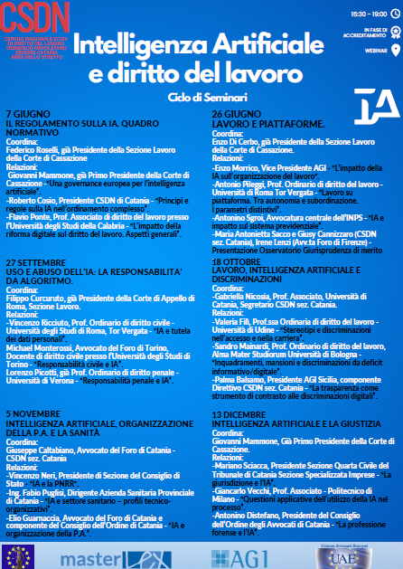 Ciclo di seminari "Intelligenza Artificiale e diritto del lavoro"